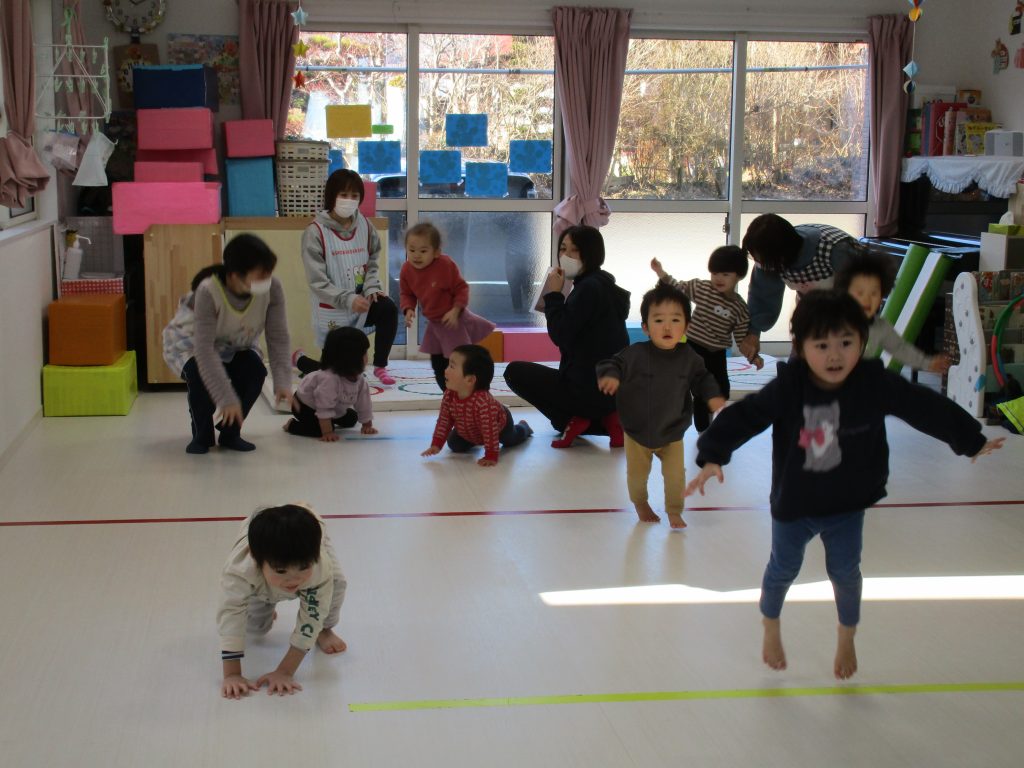 四つん這いやずり這い、ジャンプなどをしながら