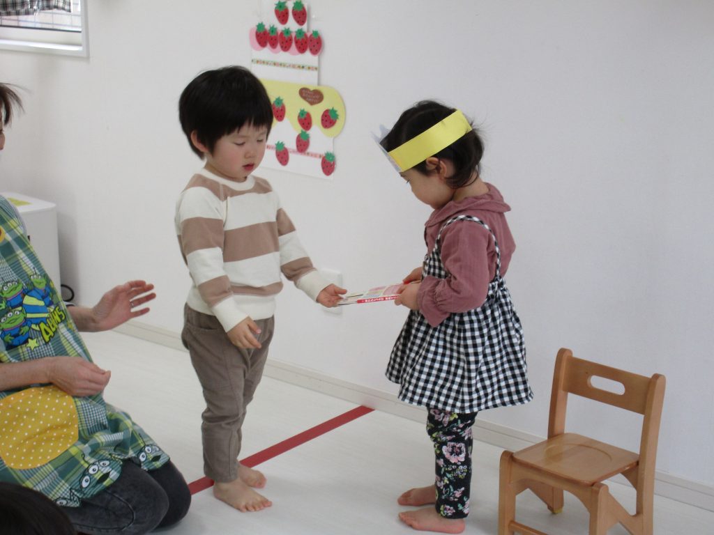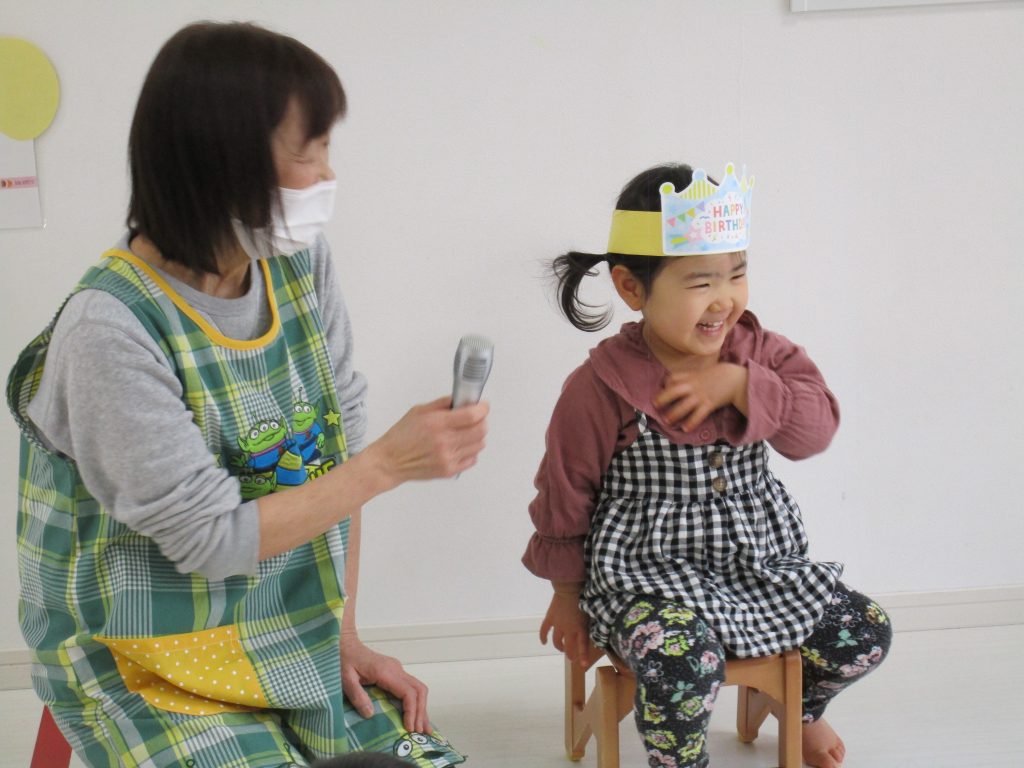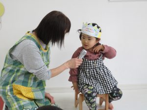 誕生児のお友達はみんなの前に出てインタビューを受けました🎤