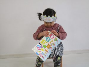 先生達からのプレゼントの絵本は自分で好きなお友達を選んで