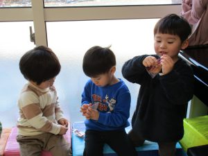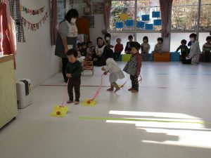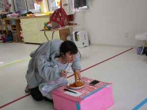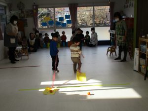 色々な遊びが終わった後、子ども達にも「やりたい人」と