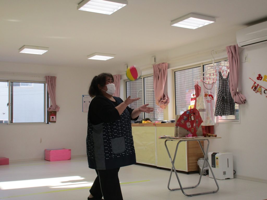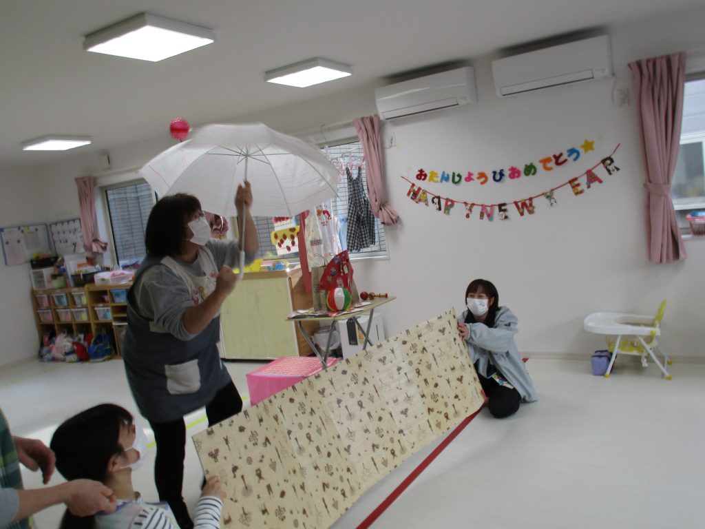 紙風船に凧あげ、傘回し、先生達が一生懸命やる姿を