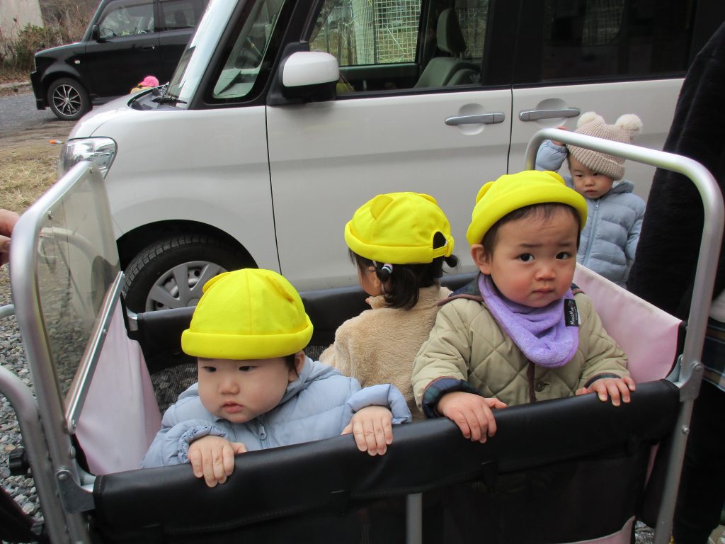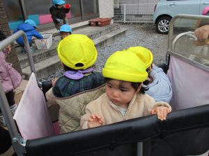 他のお友達はお散歩カーに乗って電車の見える空き地まで
