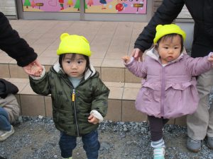 0歳児さんは月齢の大きいお友達は先生と手をつないで歩き、
