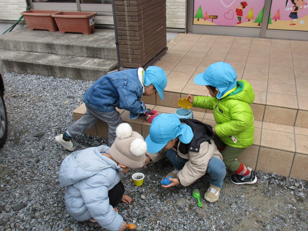 雪といえば保育園脇の砂場の方にまだ結構雪が残っていたので