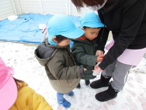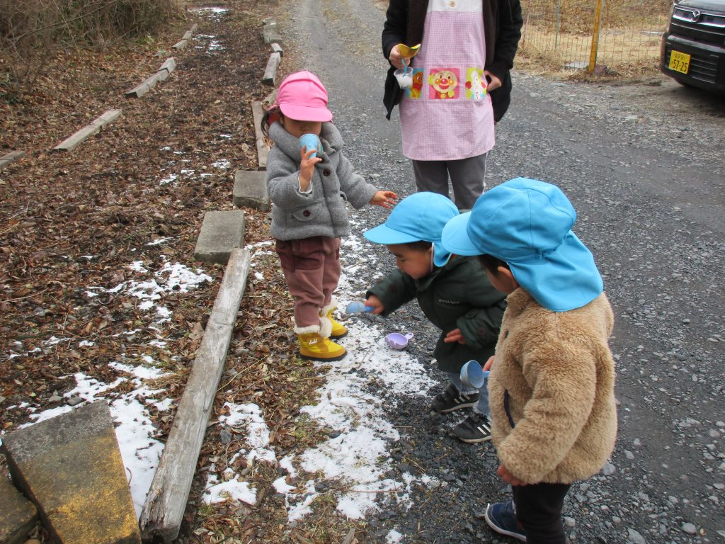 少しだけ残っていた雪を集めたりして楽しんでいました(*^▽^*)