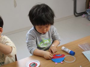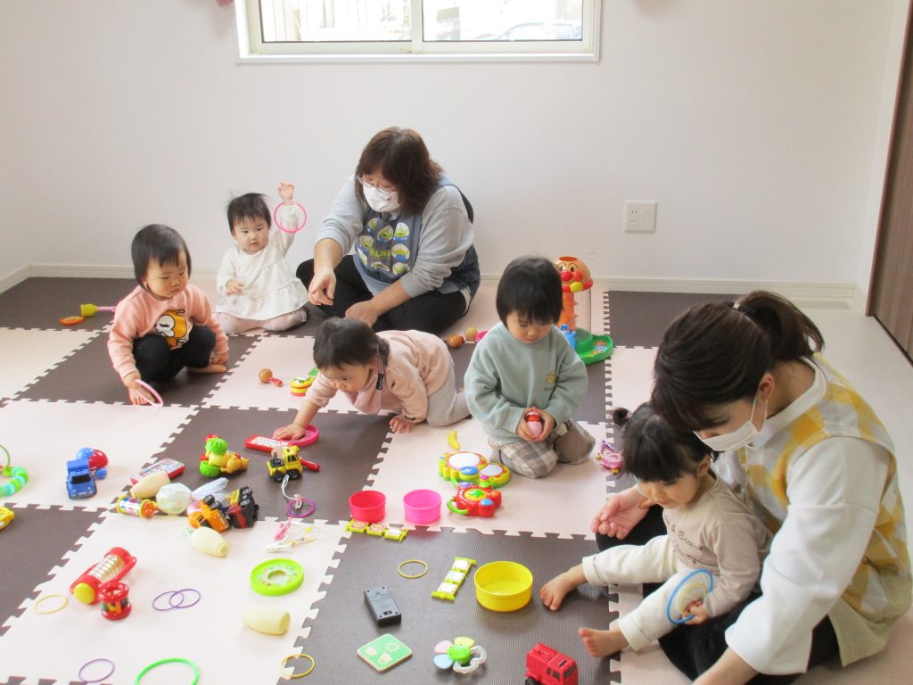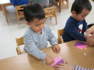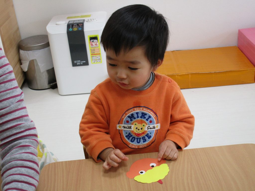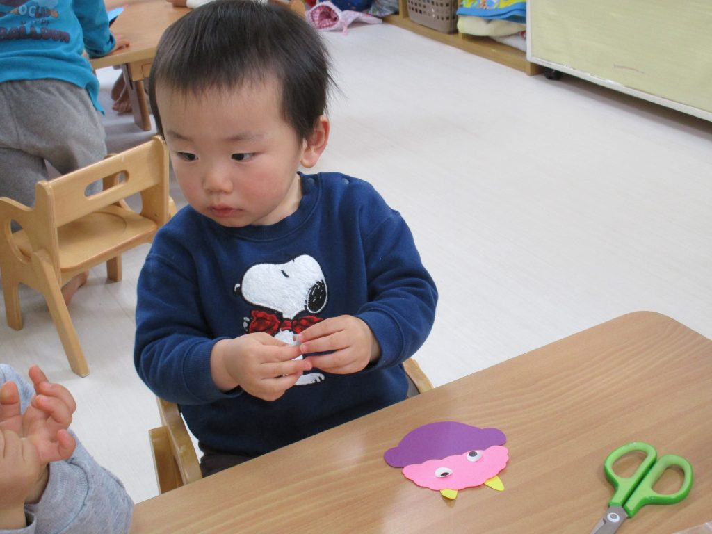 0歳児さんは玩具遊び、1・2歳児さんは製作をしました(^_^)
