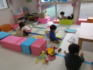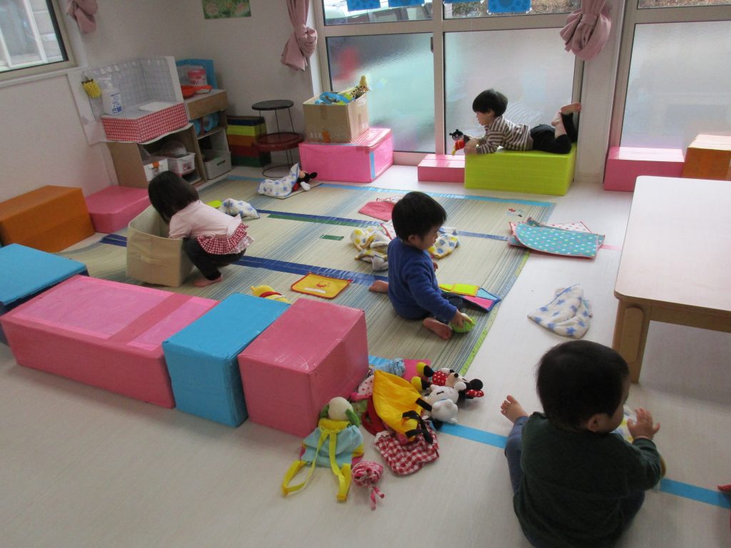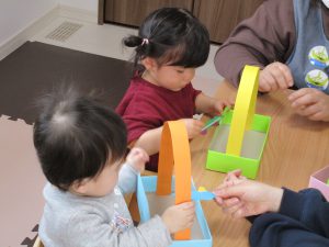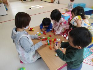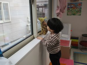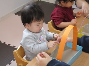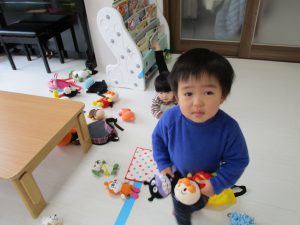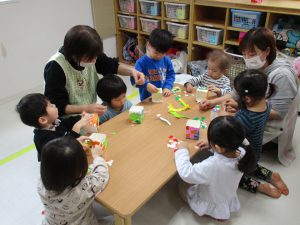 今日は0・2歳児さんは製作、1歳児さんはぬいぐるみ・