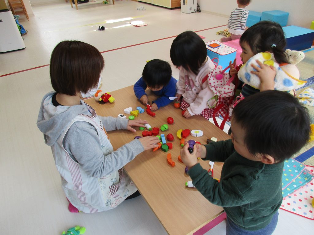ままごと遊びでは野菜や果物を切ってお料理してくれました(^o^)