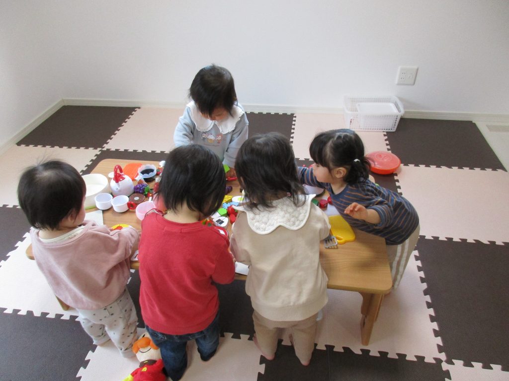 先生にごちそうしてくれたり、ぬいぐるみに食べさせてあげたり