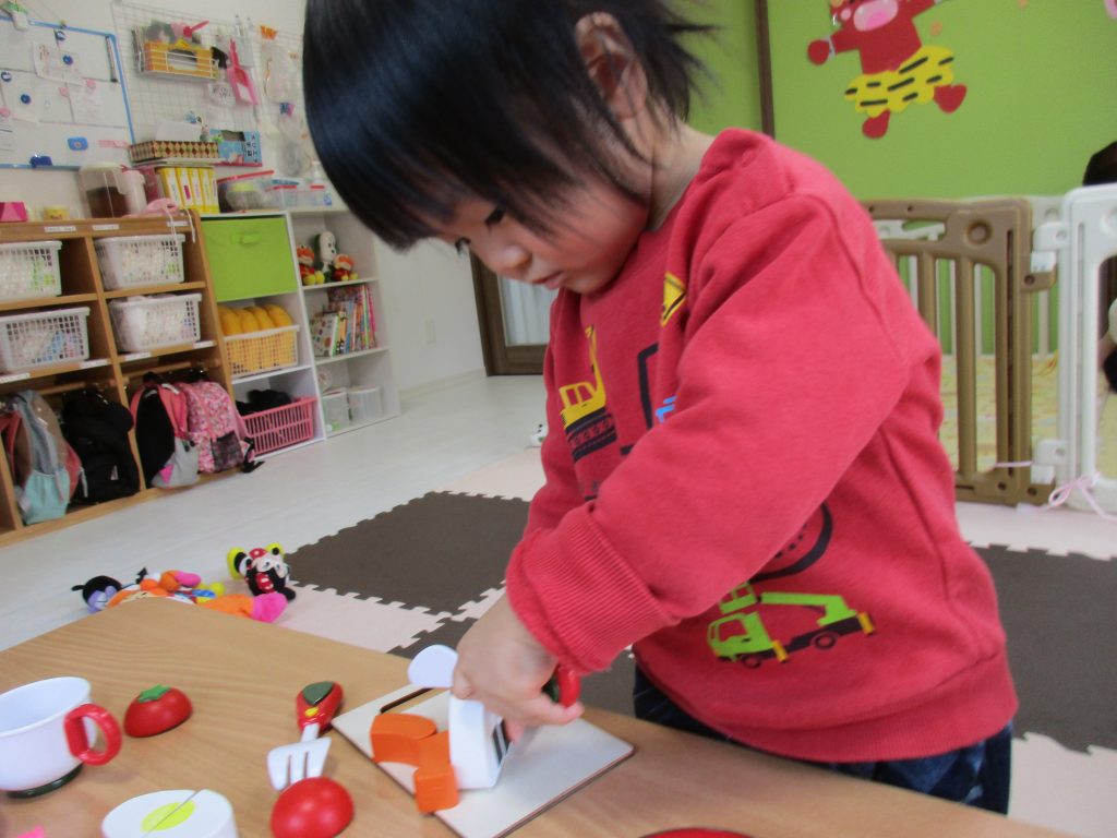 包丁を使って切ったり、お皿に入れたりお料理中!!
