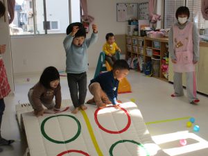体育教室の真似っこをして遊んだりもしました!!
