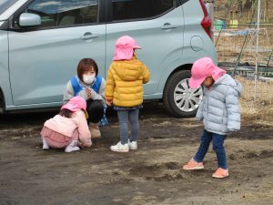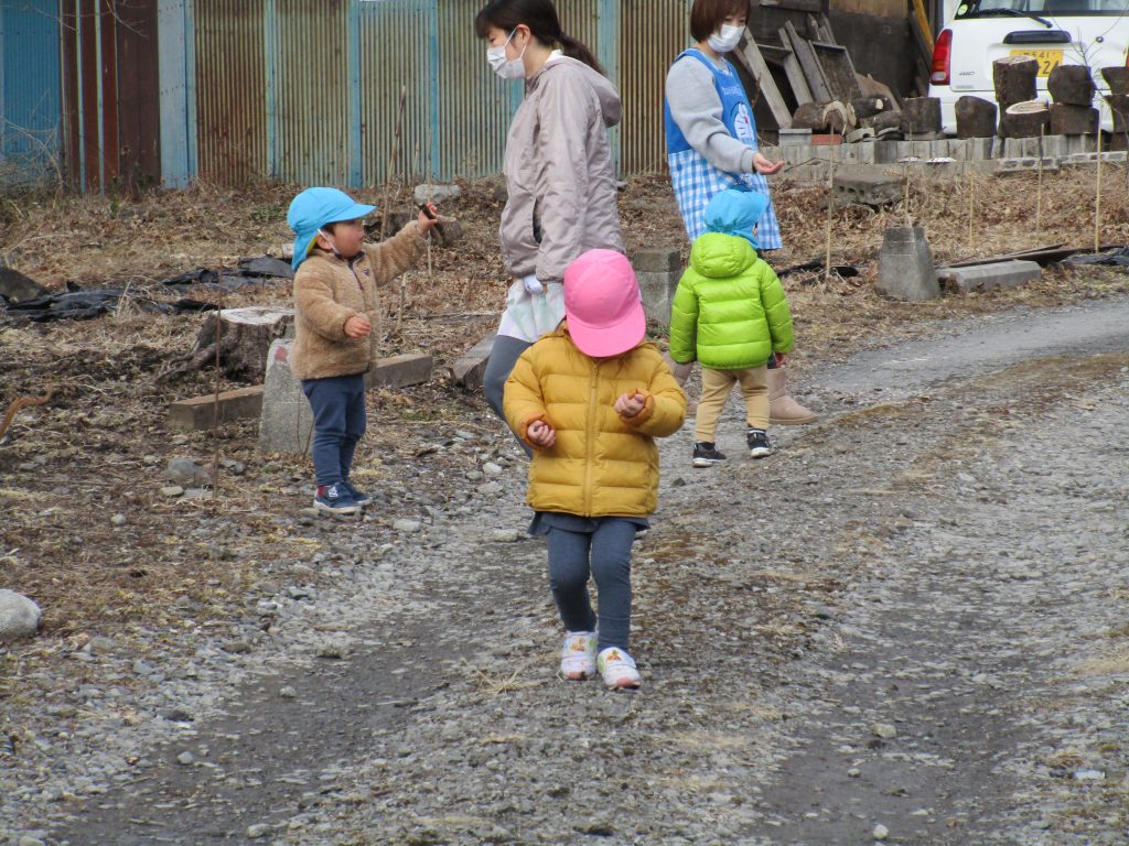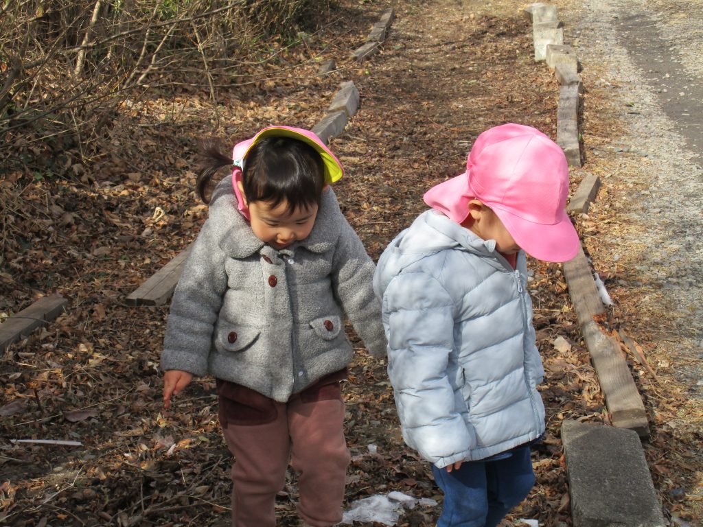 凍った土を触ってみたり、散策を楽しんだりしてました!!