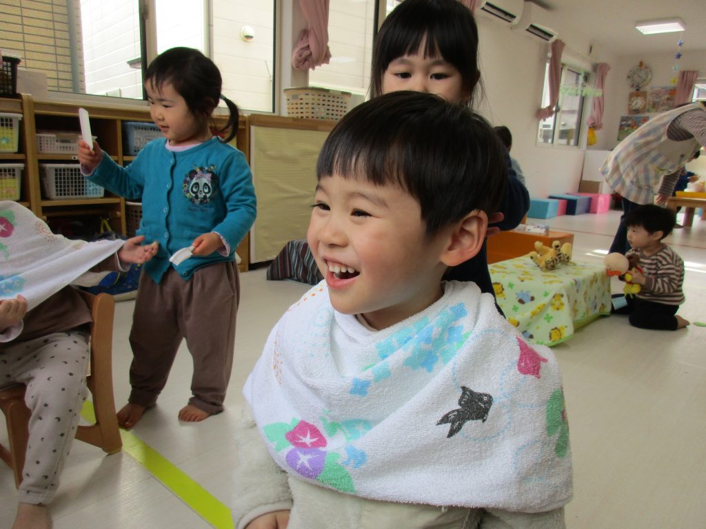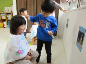 順番に床屋さん役になったり、お客さん役になったり、