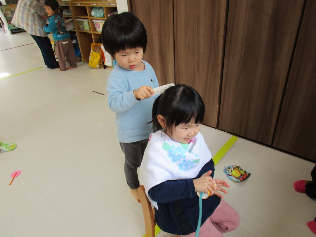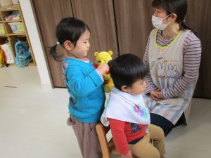 1・2歳児さんは床屋さん・お医者さん・お店屋さんごっこを