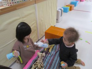 0歳児さんは玩具遊び、1・2歳児さんはごっこ遊びをしました(^_^)