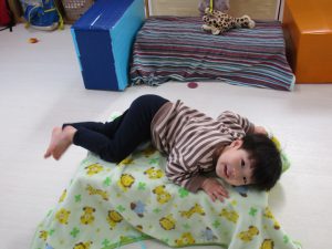 自分達が横になってみる1歳児さんです(^o^)