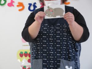 お家のカードを見て、ヒントを聞きながら誰のお家か考えました(^_^)