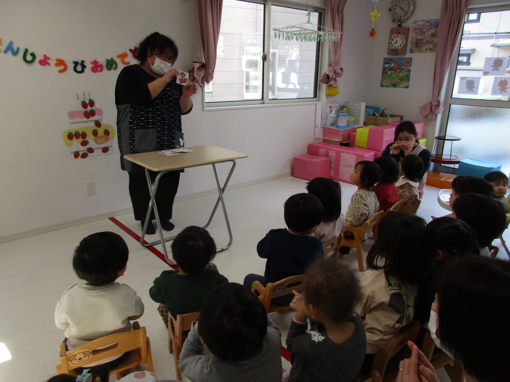 誕生児さんをお祝いした後は先生からの出し物の時間です!!