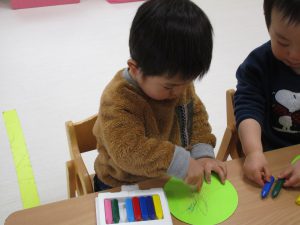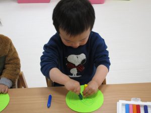 両手にクーピーを持って器用に描いていたお友達もいましたよ(*´▽`*)
