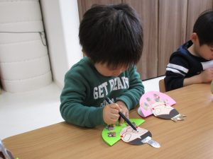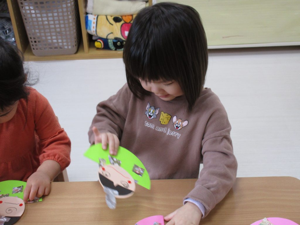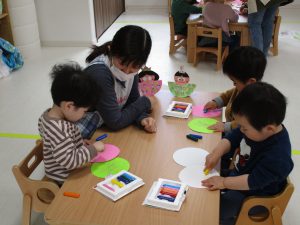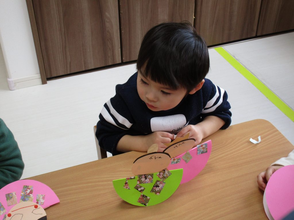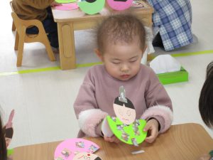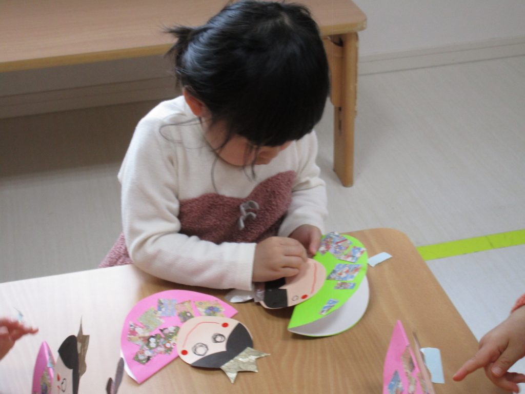 2歳児さんも昨日の続きでお雛様製作をしました!!