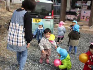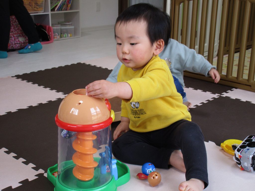 1・2歳児さんは戸外遊び、0歳児さんはお部屋で玩具遊びをしました(^_^)