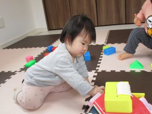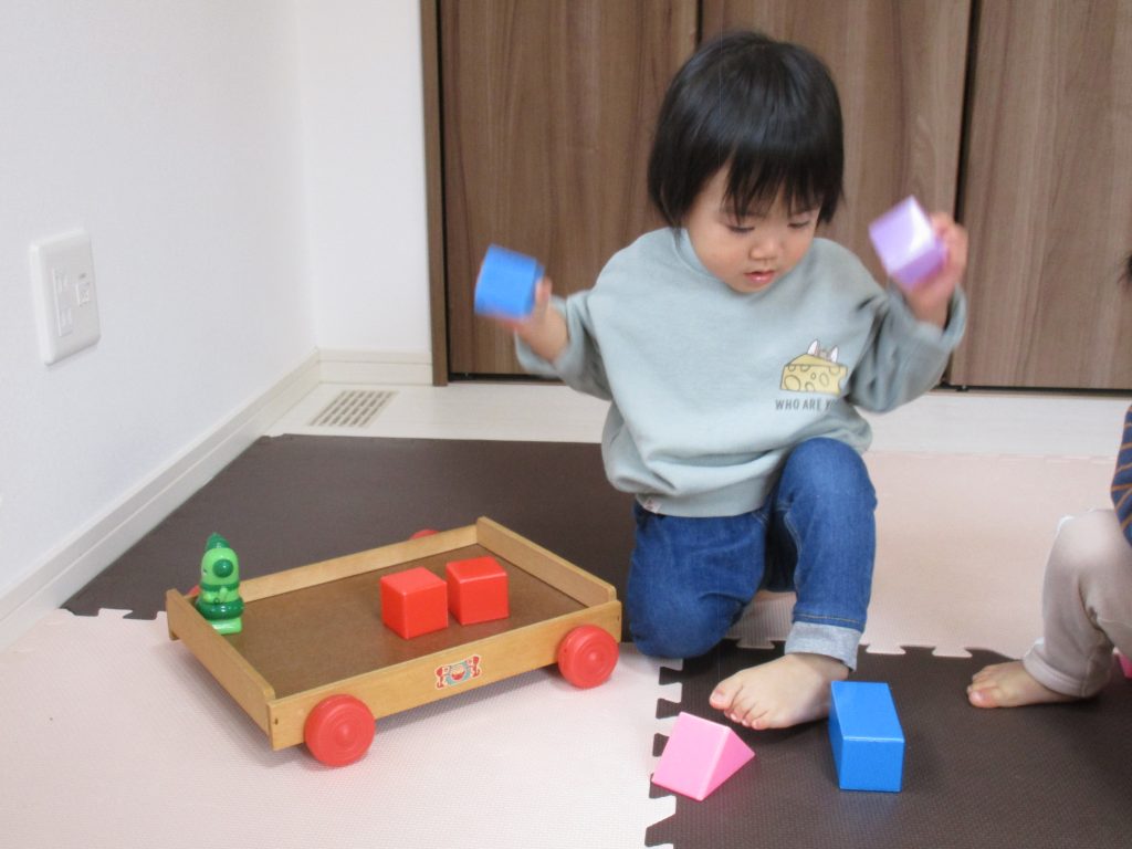 知育玩具や初めて使う積木などで遊びました(*^_^*)