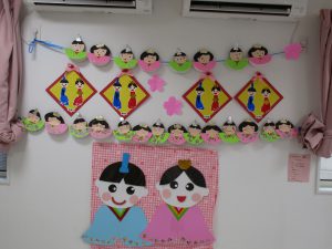 子ども達の作品や先生の手作りお雛様も飾りました🎎
