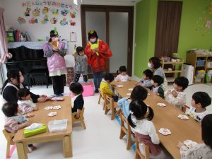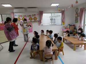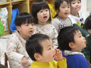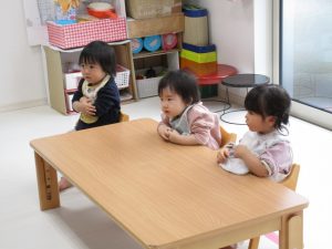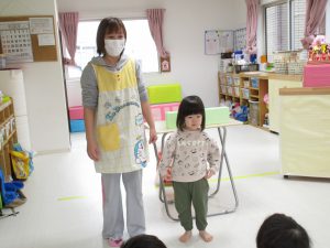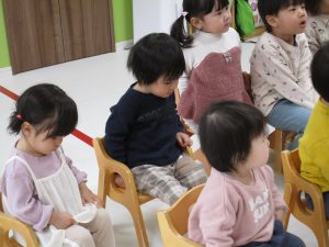 2歳児さんの女の子がお当番で、ご挨拶をしてくれました(^_^)