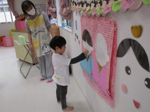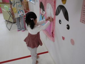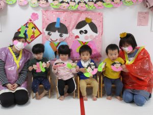 2歳児さんはお内裏様、0・1歳児さんがお雛様を完成させました🎎