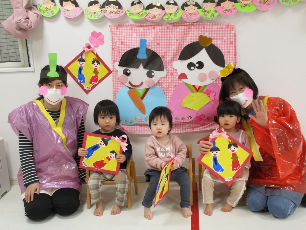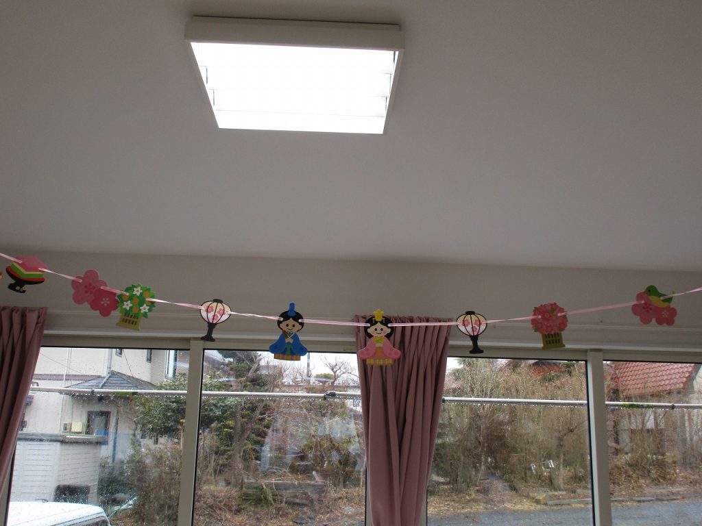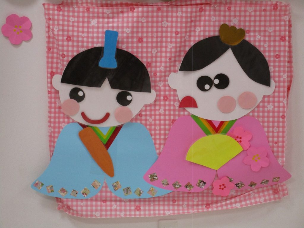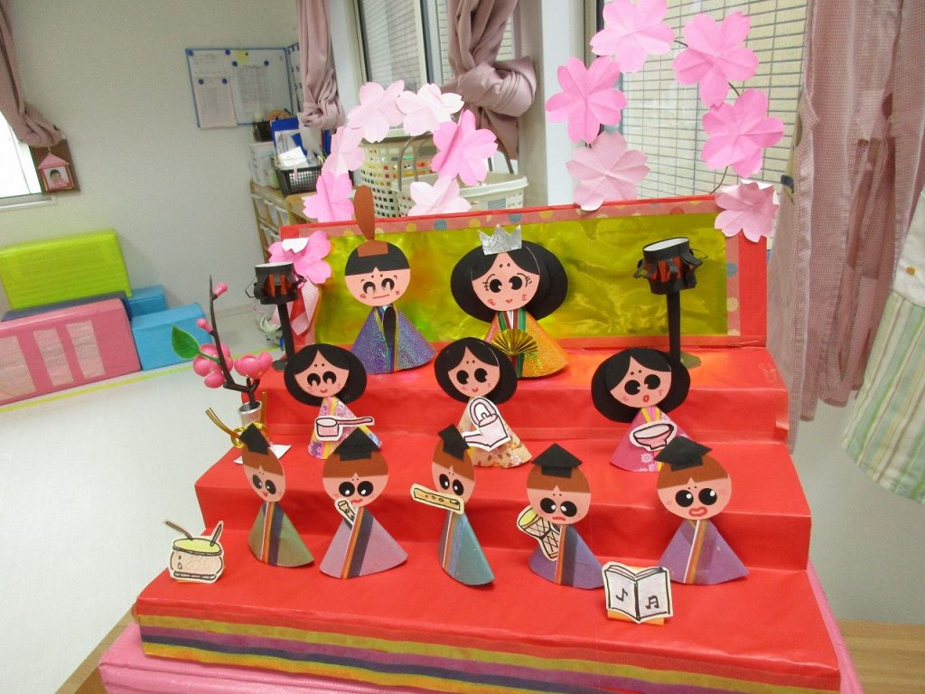 子ども達の作品や先生の手作りお雛様も飾りました🎎