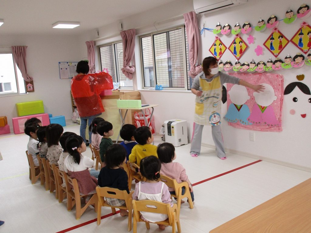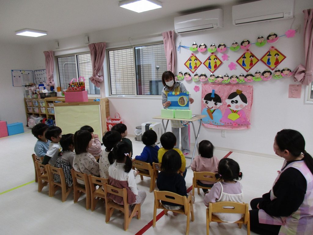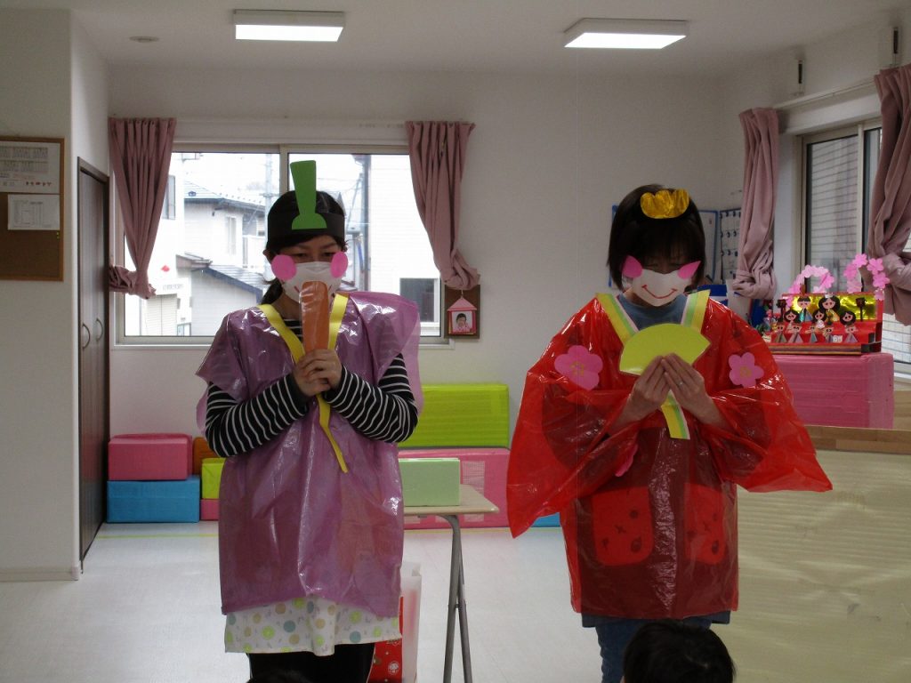 ひな祭り会が始まると、お内裏様とお雛様がきてくれました🎎