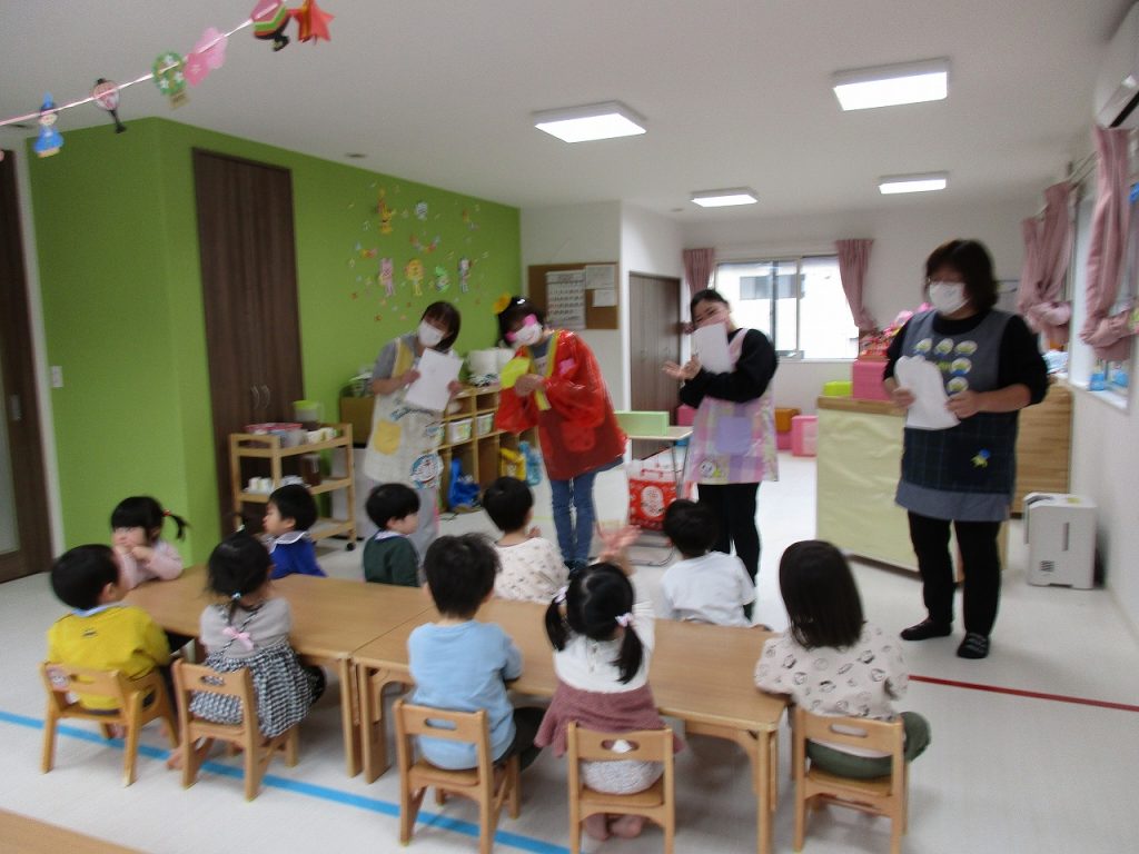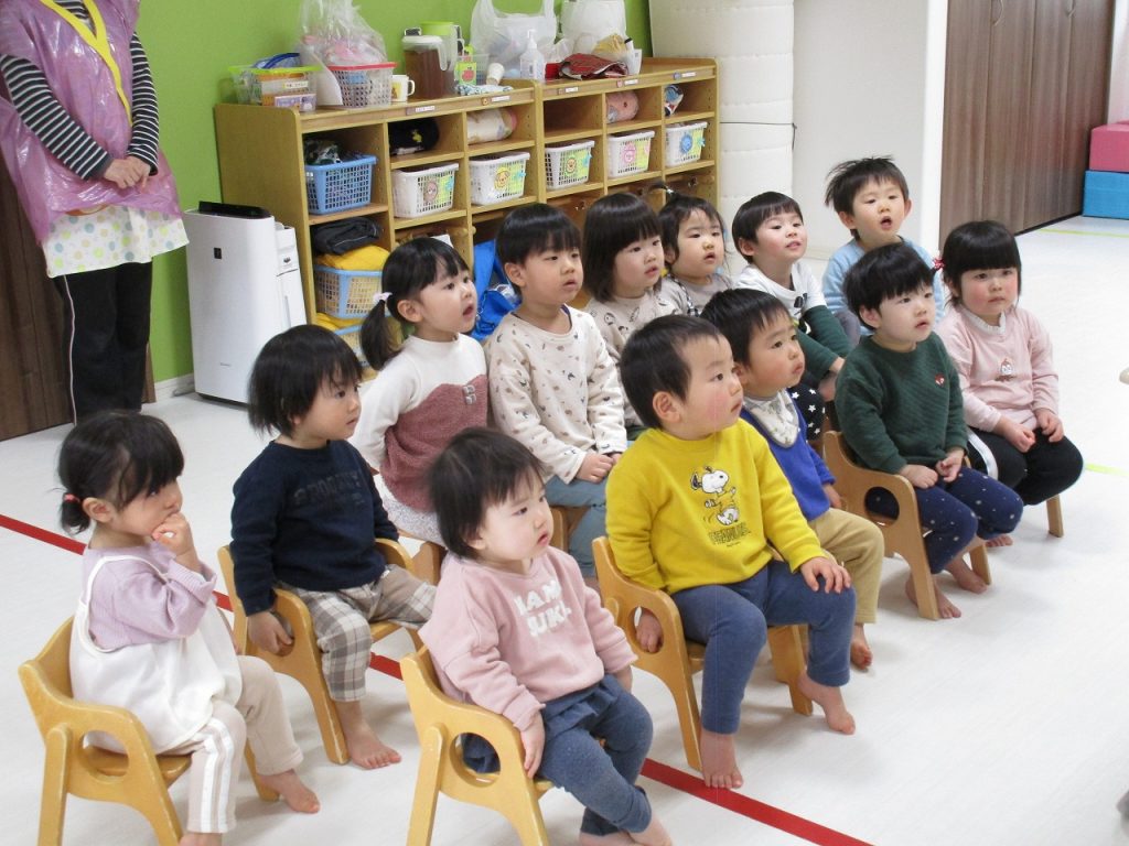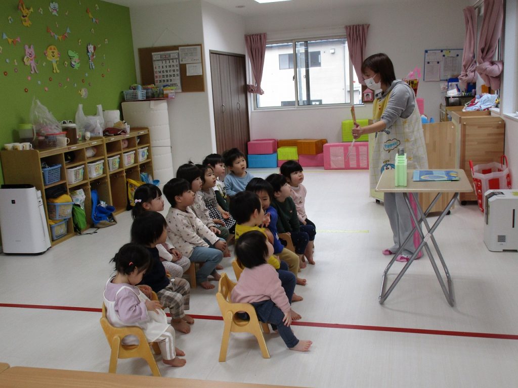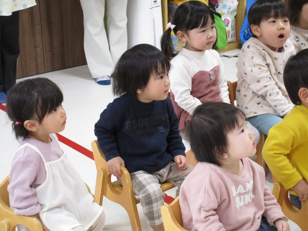 2歳児さんの女の子がお当番で、ご挨拶をしてくれました(^_^)