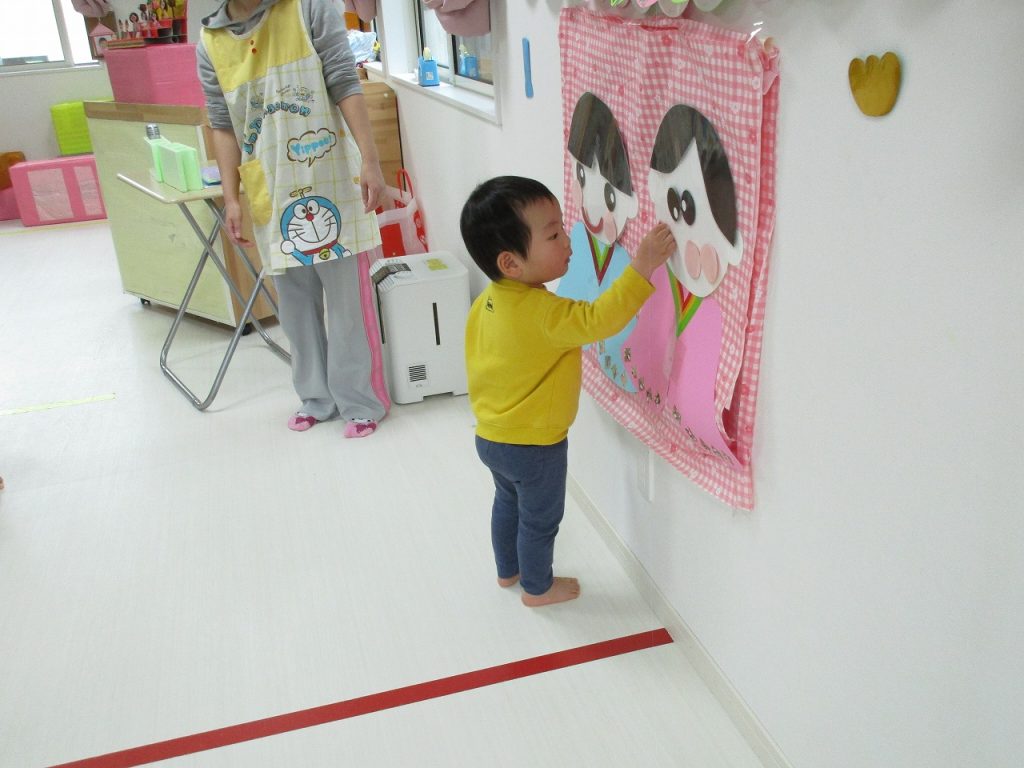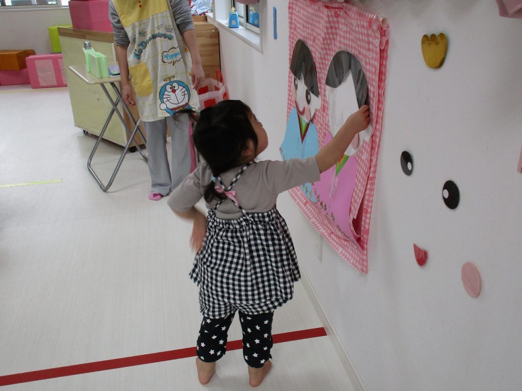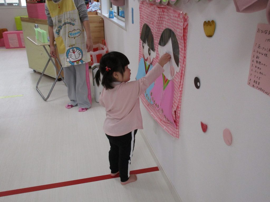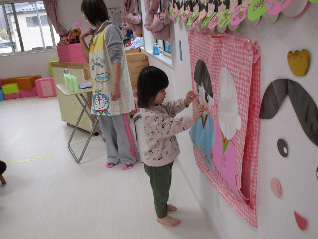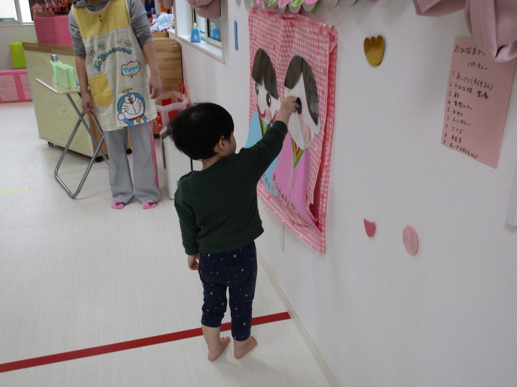 2歳児さんはお内裏様、0・1歳児さんがお雛様を完成させました🎎