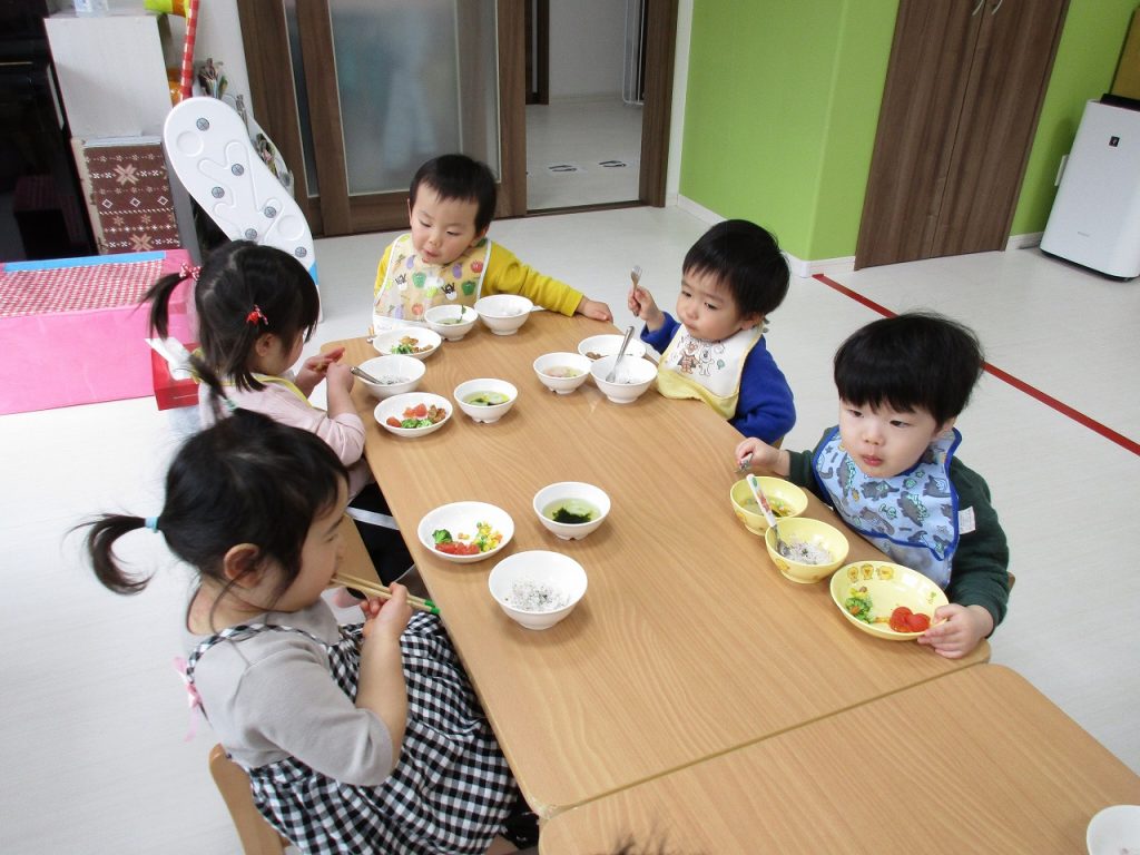 ひな祭り会の後は給食の時間です!!