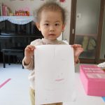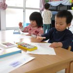 お絵描きではお父さん、お母さん、お友達の顔を
