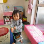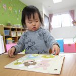 布製パズルはいつもは0歳児さんのお部屋に置いてある玩具なので、
