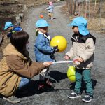 風船が飛ばないように紐を石で押さえていたお友達もいました!!