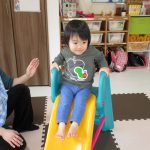 お部屋にすべり台が運ばれてくると目をキラキラさせ、