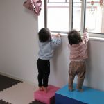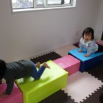 0歳児さんはすべり台とダンボールの積木で遊びました!!