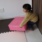 ダンボール箱に入ったり、ブロックに夢中になったり、