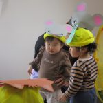名前を呼びみんなで手袋に見立てたハウスの中に