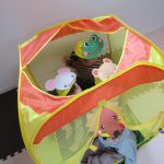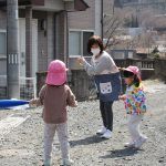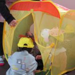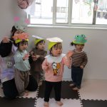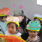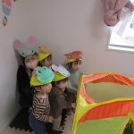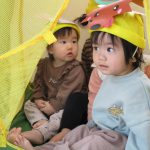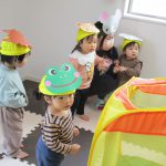名前を呼びみんなで手袋に見立てたハウスの中に