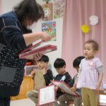 一人ずつ終了証書を頂き、4月からどこの幼稚園・こども園に行くか