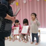 2歳児さんはみんなの前で修了証書を頂いたり、