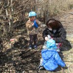 2歳児の男の子達は土を掘ったり、大きな石をよけて虫探しです(^o^)