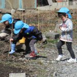 気付くと、保育園のプランターのチューリップの芽も観察しに行き、