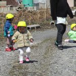 「お外でビー玉探す!!」と2歳児の女の子・・・