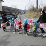 1・2歳児さんは誘導ロープにつかまって歩きました!!