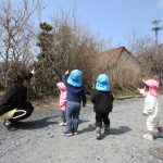 お外では、坂道をかけっこしたり、アリさんを観察したり。ビー玉を見つけたお友達もいましたよ。