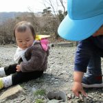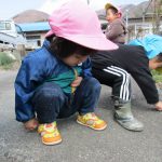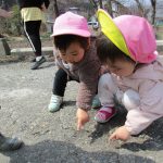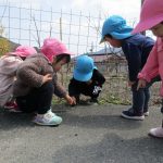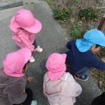 お外では、坂道をかけっこしたり、アリさんを観察したり。ビー玉を見つけたお友達もいましたよ。